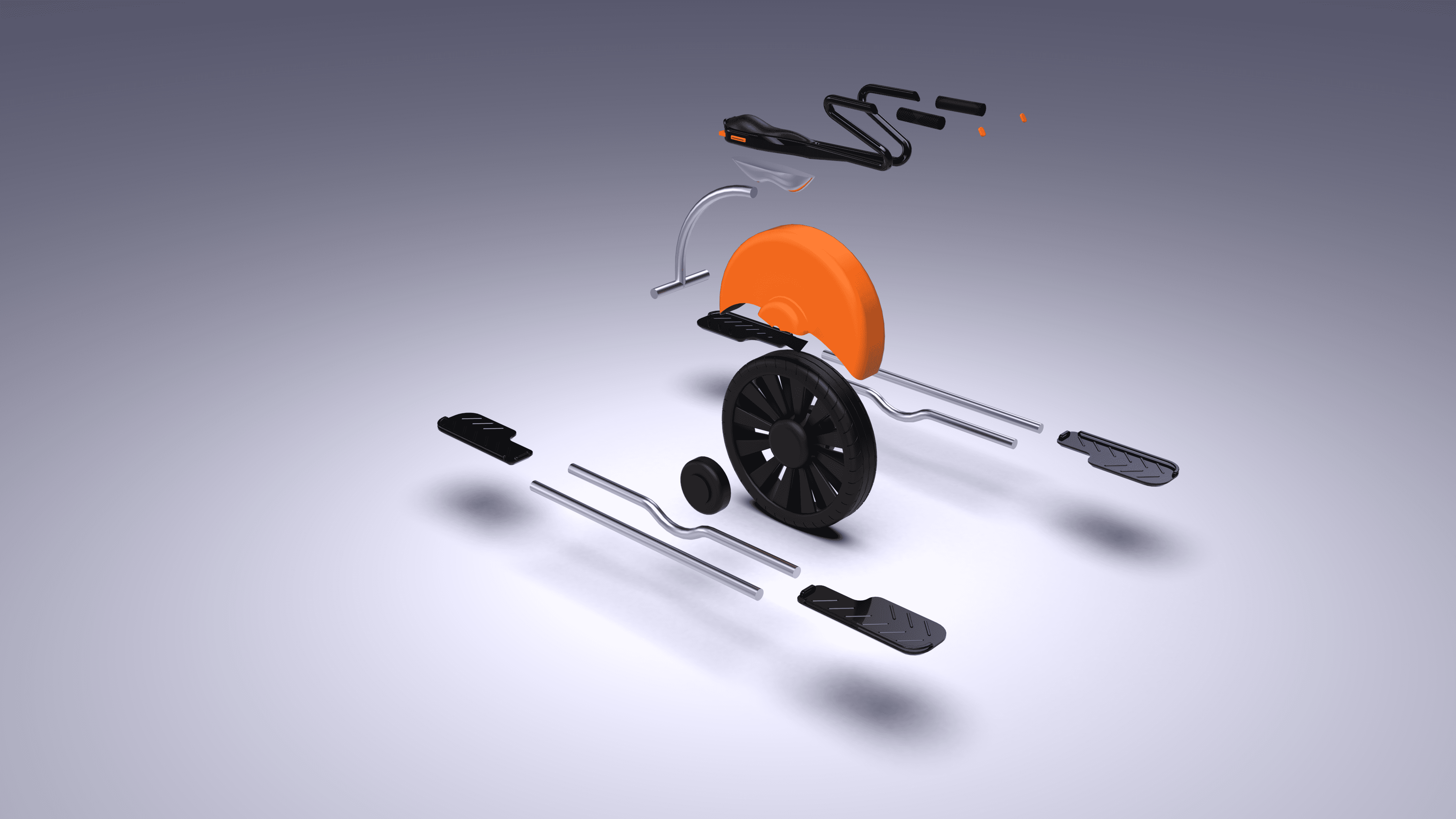 The mobility device was designed to be intuitive, lightweight, and practical for daily use. It incorporates a balance-steering mechanism, allowing for easy maneuverability, and includes a stable platform for users to rest their feet. Recognizing the needs of students who often carry backpacks or other baggage, the device is equipped with straps to securely hold belongings during transit. This thoughtful design not only enhances usability but also aligns with the project's focus on safety and minimal material usage, making it both user-friendly and sustainable.