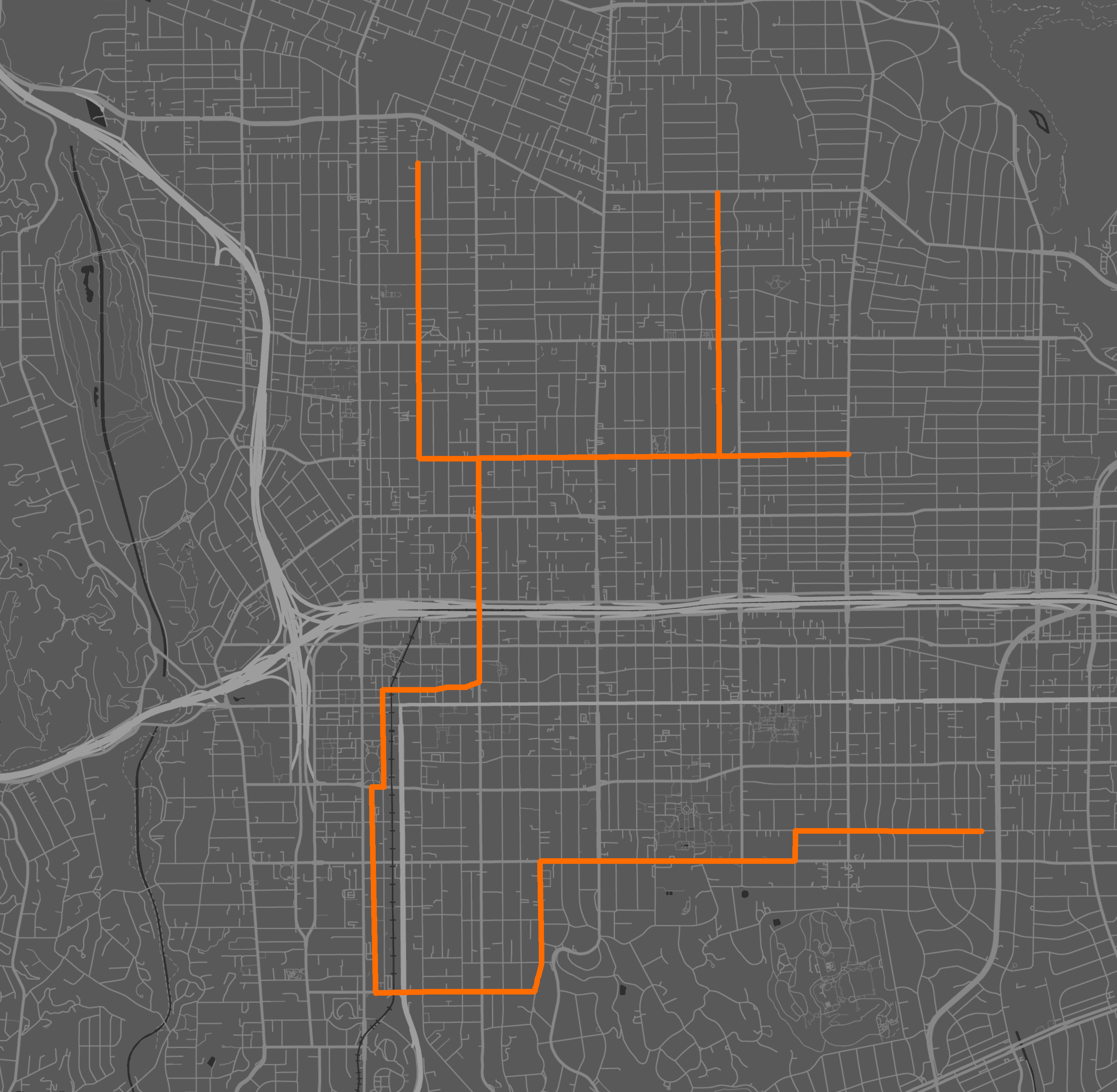 These maps served as essential tools in guiding the proposed layout for the construction of dedicated lanes. These lanes were designed to be used exclusively by ArtCenter students, forming a core safety feature of the service. By addressing both traffic patterns and student living locations, the solution ensured practicality and increased safety for users.